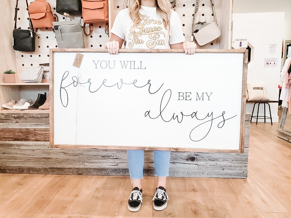 Each piece of wood is perfectly imperfect- rustic in nature and full of character, just as I want them to appear! Each piece of wood will take stain differently, so all pieces will slightly differ due to the nature of wood, wood grain, and knots. I do not try to hide these characteristics in the wood pieces, as they make each piece unique and one of a kind. There is no vinyl on this sign- all lettering is done by hand with paint. Because each piece is hand painted, please note there may be some very slight variability from piece to piece, although I try very hard to keep all pieces as uniform as possible!
