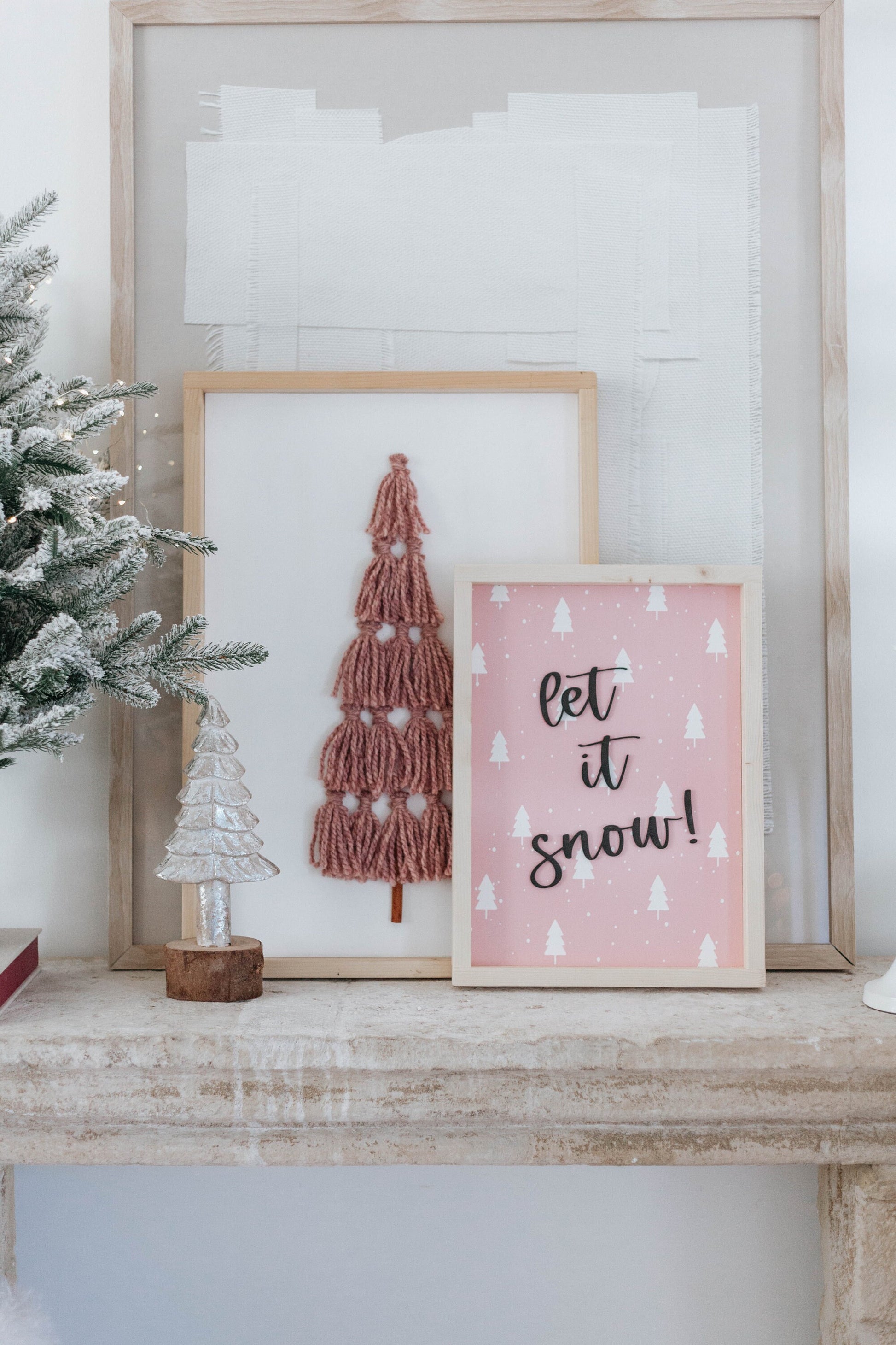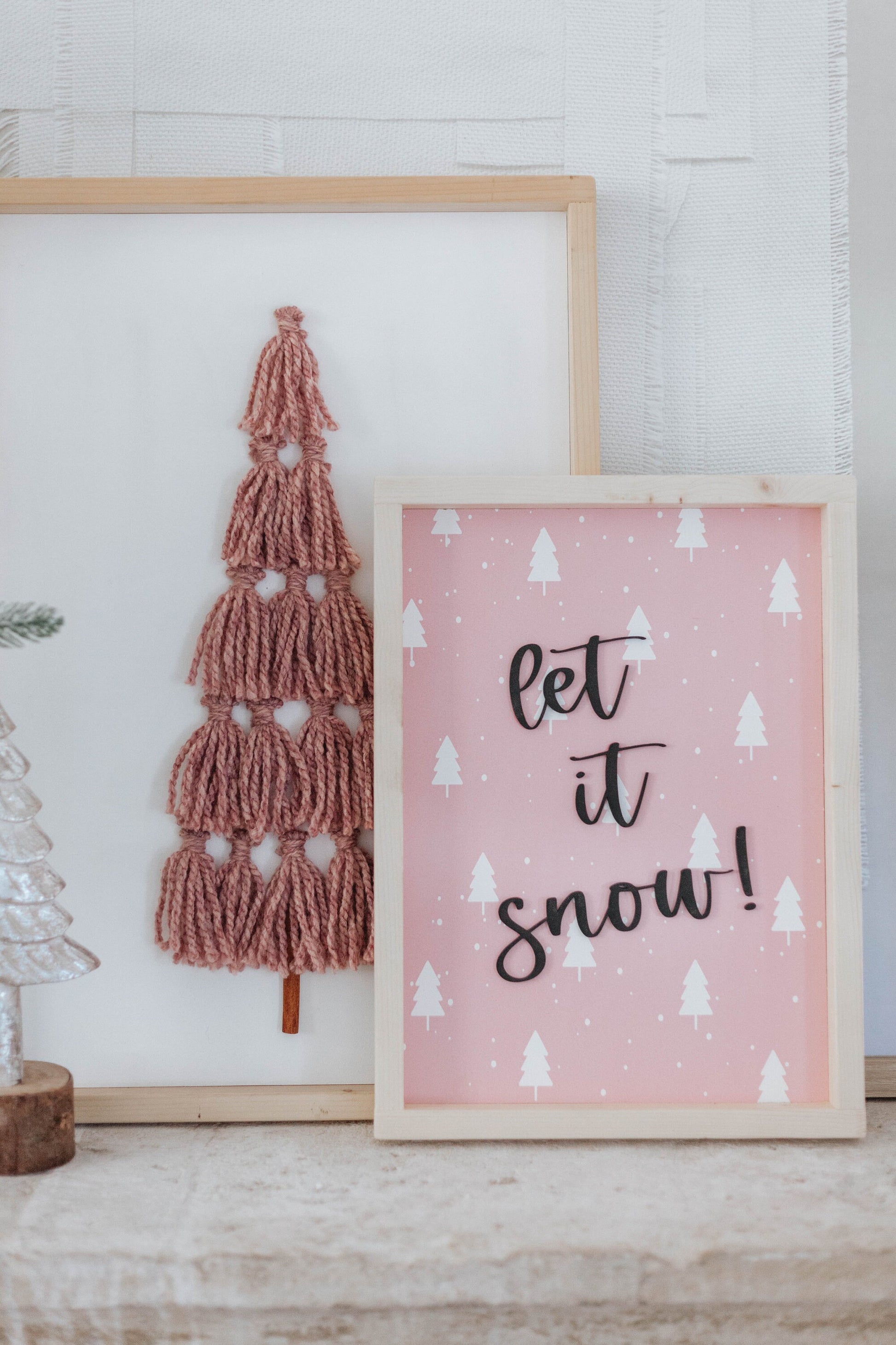 The cutest pink Christmas Tree professionally printed on wood. 3D letters attached.
