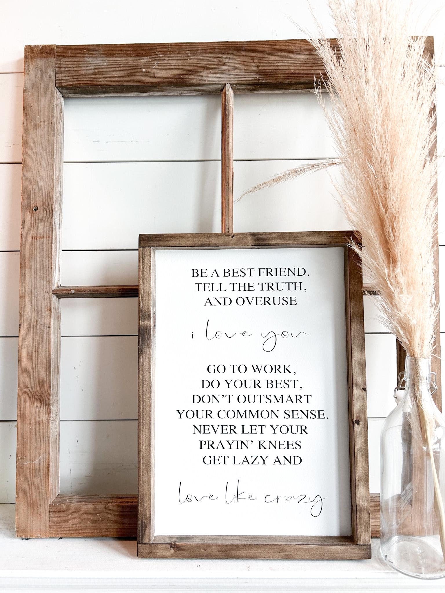 Each piece of wood is perfectly imperfect- rustic in nature and full of character, just as I want them to appear! Each piece of wood will take stain differently, so all pieces will slightly differ due to the nature of wood, wood grain, and knots. I do not try to hide these characteristics in the wood pieces, as they make each piece unique and one of a kind. There is no vinyl on this sign- all lettering is done by hand with paint. Because each piece is hand painted, please note there may be some very slight variability from piece to piece, although I try very hard to keep all pieces as uniform as possible!