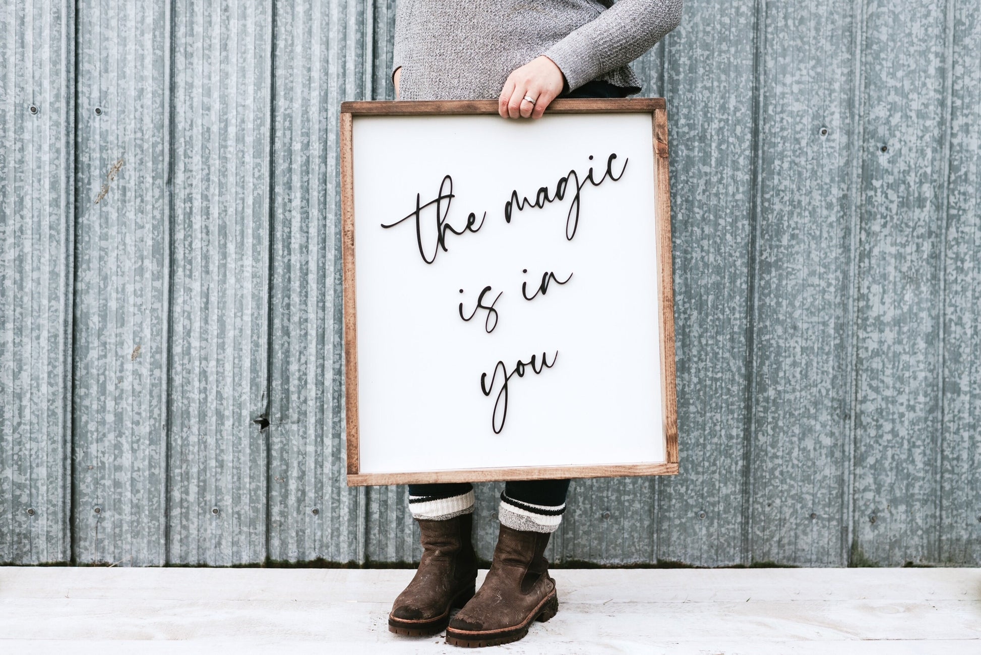 Each piece of wood is perfectly imperfect- rustic in nature and full of character. Each piece takes stain and colour slightly different. This sign is printed professionally with highest quality ink. No vinyl at all.