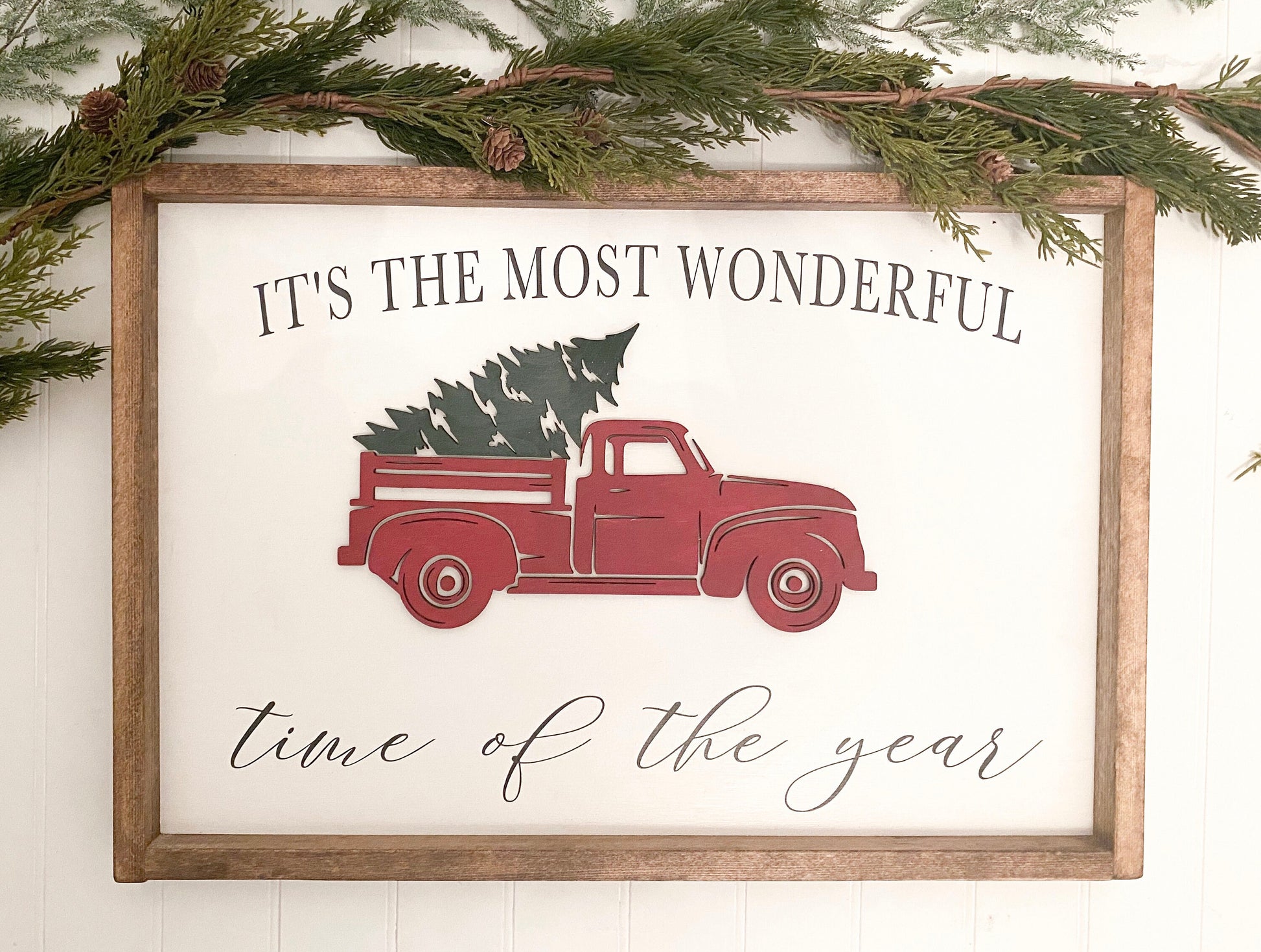 "3D Truck, Most Wonderful Time Of The Year" framed wood sign