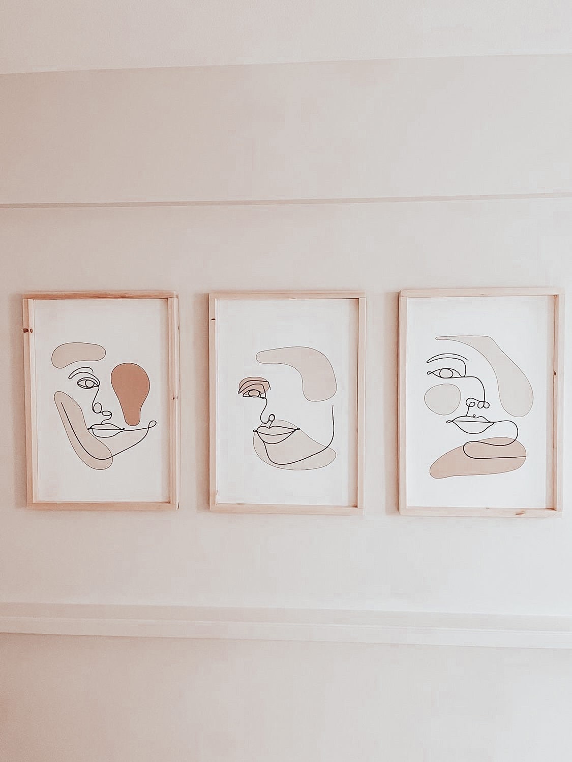 Boho abstract faces professionally printed directly onto MDF and then framed in Pine. Set of 3.