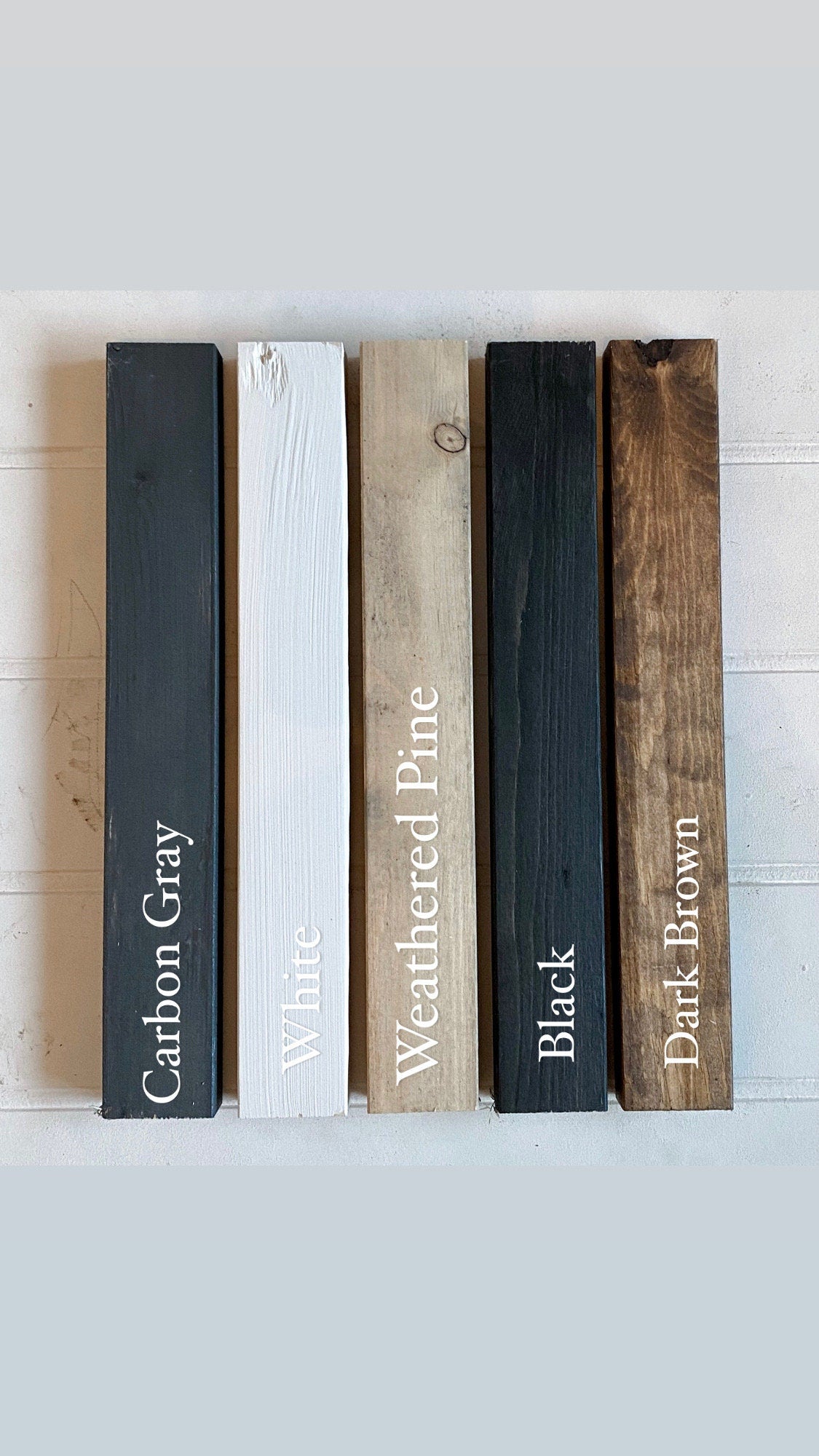 Each piece of wood is perfectly imperfect- rustic in nature and full of character, just as I want them to appear! Each piece of wood will take stain differently, so all pieces will slightly differ due to the nature of wood, wood grain, and knots. I do not try to hide these characteristics in the wood pieces, as they make each piece unique and one of a kind. There is no vinyl on this sign- all lettering is done by hand with paint. Because each piece is hand painted, please note there may be some very slight variability from piece to piece, although I try very hard to keep all pieces as uniform as possible!